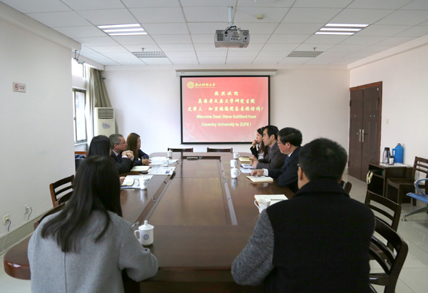 加里福德简要介绍了考文垂大学研究生院的基本情况。他说,考大研究生院现有在校生5000余人,占全校学生总数的20%;教学质量出色,在2016年《卫报》排名中,名列全英第15位。近年来学院大力推广研究生项目合作,希望双方能就会计、金融、工商管理和国际商务等硕士人才联合培养开展深入合作。