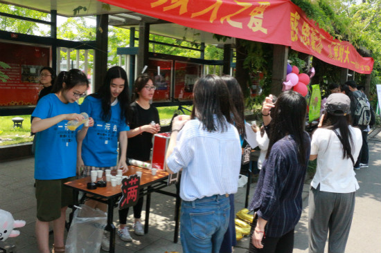 活动秉承“一元一点真情,一月一份爱心”的理念,结合“母亲节”主题,推出感恩系列活动。活动现场,吸引了许多师生的热情参与,氛围十分热烈。“满口甜蜜”摊位前,同学们积极参与一元钱换可口的自制饮料的活动;“巧手寄语”摊位前,同学们则学习着折纸的技艺,并在留言板上写下了对于妈妈的祝福;“金石拍卖”摊位则是让同学们以“一元两次,三元封顶”的价格猜商品的价值,并在猜对后将商品送给同学们。还有“头脑风暴”、“图书漂流”和“风扇送凉”等活动,这个色彩斑斓的五月,将我们的爱心继续传递下去。
