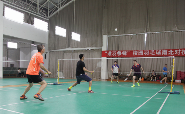 比赛在行政机关、教辅部门组成的“南队”以及各学院、体育部、东方学院组成的“北队”之间进行。两个参赛队伍阵容强大,势均力敌,双方在男双、混双项目中展开激励较量。比赛场上气氛热烈,选手们以每一球必赢,每一分必争的心态,吊球、扣杀、放网,步法灵活、身手敏捷、进可攻退可守,尽情挥洒着汗水,激烈的比赛赢得现场观众的阵阵喝彩。
