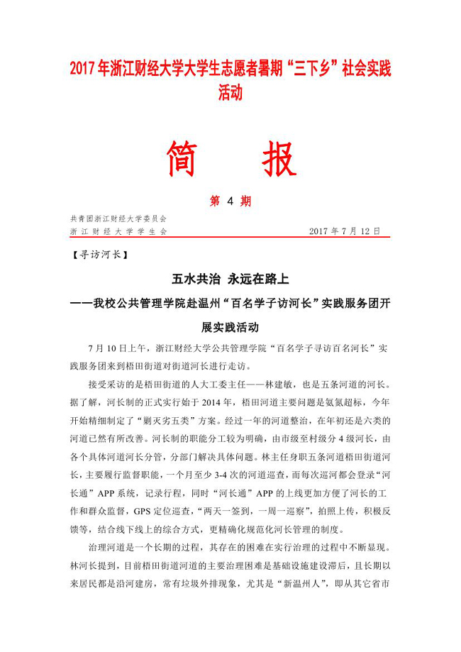 “百名学子寻访百名河长”暑期社会实践专项活动系列报道之二