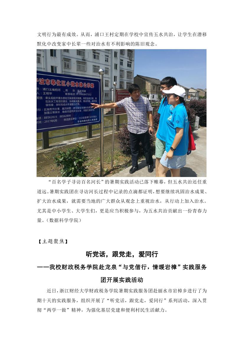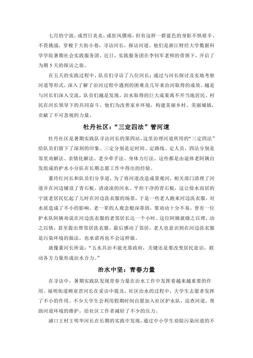 “百名学子寻访百名河长”暑期社会实践专项活动系列报道之四