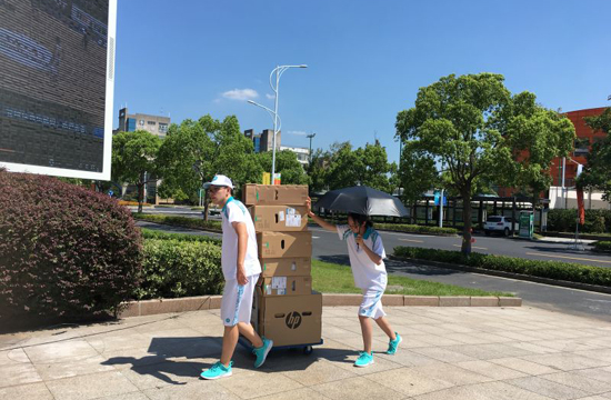据了解,在为期八天的工作中,10名志愿者共安装了9台台式电脑、9台一体机。接着,志愿者们齐心协力,冒着烈日,将完成组装的设备搬运到指定地点进行安装、调试。