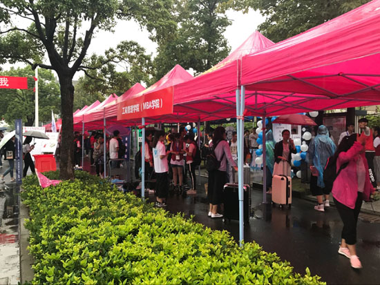 9月初,后勤服务中心就开始对校园环境进行绿化美化,在学校重点部位布花造景,并提前一天在校内各迎新接待点、集中报到点、缴费点等处搭建好帐篷、摆放好桌椅,让整个校园充满了温馨的迎新氛围。