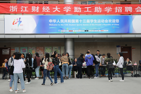 本网讯(通讯员 吴少鹏)10月13日,学校2017-2018学年勤工助学招聘会在下沙校区文化中心一楼大厅举行。本次招聘会共提供校内45个部门167个岗位,实际招聘600余人。一年一度的勤工助学招聘会是学校资助家庭经济困难学生的众多举措之一,受到了广大师生的欢迎。