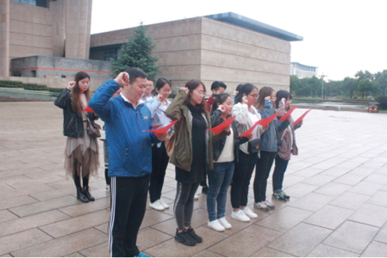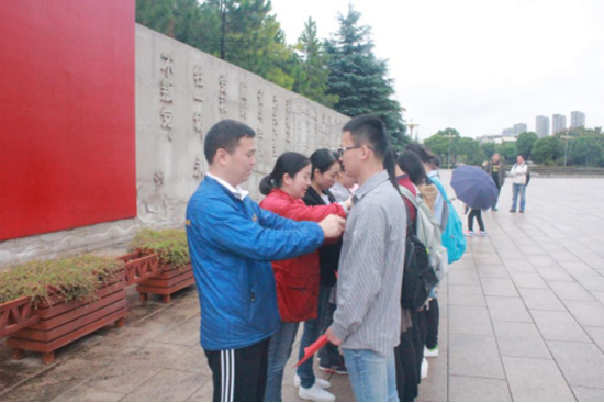 本网讯 “我志愿加入中国共产党,拥护党的纲领,遵守党的章程,履行党员义务……”熟悉的语句,在嘉兴南湖革命纪念馆前朗朗响起。高举的拳头,胸前的党员徽章,鲜红的党旗映衬着激动的脸庞,无一不提示着志愿加入中国共产党的义不容辞。10月15日,人文与传播学院党委“佩戴党徽树形象,迎接党的十九大”主题党日活动在嘉兴南湖火热开展。