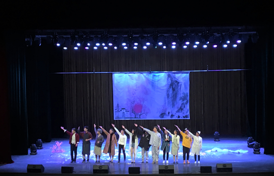 本网讯(通讯员 张璐)12月5日晚,由花值导演,陈锡娇、扈学柱、龙馨云等主演的我校艺术团青藤话剧社年度大戏《暗恋桃花源》在下沙校区文化中心剧场倾情演绎。