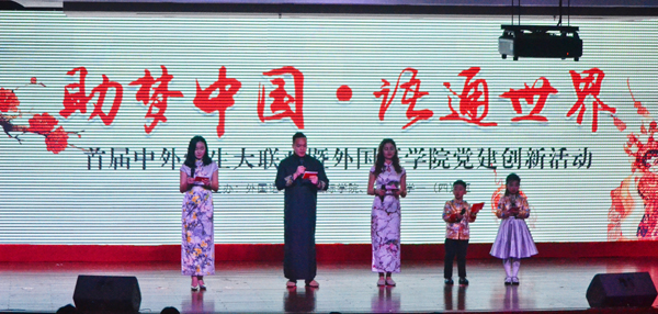 本网讯 12月9日下午,校首届“助梦中国,语通世界”中外学生文化交流节暨外国语学院党建创新活动在我校下沙校区举行。校党委副书记卢新波,外国语学院党委书记章汝雯,国际学院院长余慕鸿等出席活动,外国语学院师生、留学生和杭州文清小学一年级学生共计1000余人参加活动,并在网络平台进行了同步直播。