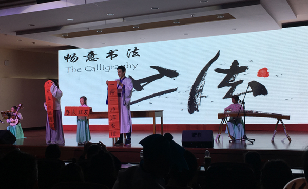 一段古典唯美的汉舞《礼仪之邦》、一首热情似火的Hip-hop拉开了本次交流节的序幕。中外学生中国传统服饰走秀,演绎着传统服饰的时代变迁,旗袍之典雅、汉服之古朴、唐装之飘逸,留学生穿上这些传统服饰又加入了不少时尚和艺术气息。诗经朗诵展示了中国古代礼仪文明渊远流长;多民族传统乐器表演,音乐多元文化荟萃;中外学生畅意书法,翩若惊鸿,婉若游龙;《音乐之声》西方经典音乐剧,美妙动听、赏心悦目;多语联唱《友谊地久天长》,更是把现场气氛推向了高潮。整场演出精彩纷呈,多语言多文化交流融合,为师生奉献了一场绝妙的视听盛宴。