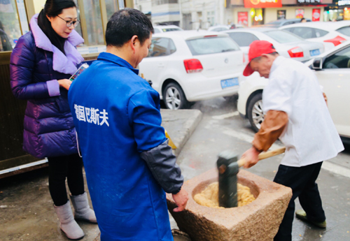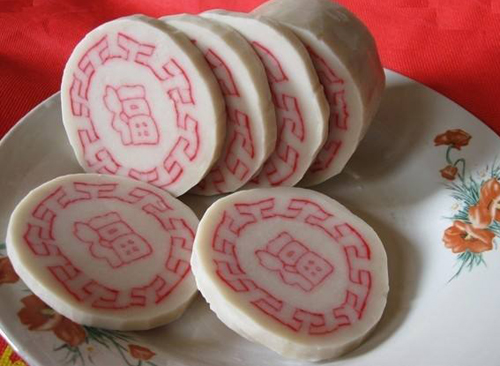 家乡的年味儿少不了一顿丰盛的年夜饭。在温州,年夜饭是很讲究的。冷菜(温州话叫“边盘”)一般会是双数,四、八都有,冷菜一般都是特色的温州吃食,像鸭舌、血蛤、白鲞、海蜇皮等。而正菜第一盘一定是炒年糕,寓意“年年高”。每当过年的时候家家户户都要捣年糕。年糕是用糯米和籼米做的,要放很多白糖,有的还要加红糖调味。人们往往还会把捣好的年糕放在不同花纹的印版里,压制出带有福字、牡丹、蟠桃等吉祥图案的甜糕,以表达对新年的美好祝愿。