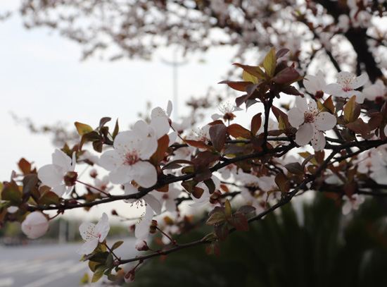 在买球,处处是“杏花飘雪小桃红”的春景,