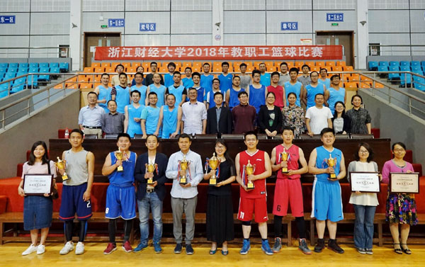 本网讯 5月10日,经过3周36场紧张激烈的角逐,我校2018年教职工篮球比赛圆满落幕。校纪委书记陈金方出席闭幕式并为获奖团队颁奖。