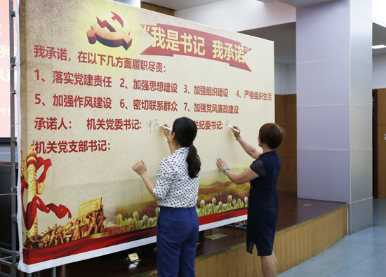 本网讯(通讯员 赵蕾)5月29日下午,机关党委举办“推进全面从严治党、加强机关作风建设”专题活动。活动由“我是书记 我承诺”机关党建工作责任承诺签名仪式及机关作风建设专题辅导讲座两部分组成。校纪委书记陈金方出席并讲话。全体机关人员参加活动。活动由机关党委书记申屠莉主持。