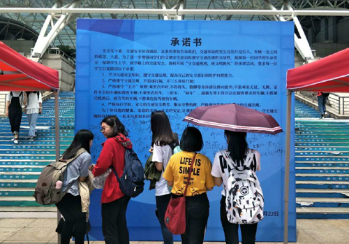 在交通安全宣传月期间,学校还通过发放校园交通安全知识手册、举办留学生交通安全教育讲座和安全知识竞赛以及签订文明交通安全承诺书等形式,旨在让广大师生认识到交通安全的重要性,为我校创建文明有序的校园交通环境营造了良好氛围。