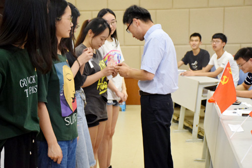 本网讯 为庆祝中国共产党成立97周年,进一步增强党组织的凝聚力和战斗力,激励党员坚定爱党、信党、跟党走的理想信念,6月26日,财政税务学院组织开展了迎“七一”重温入党誓词暨新党员入党宣誓仪式。