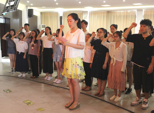 6月28日上午,人文与传播学院举行新党员入党宣誓仪式。学院师生党员180多人参加了活动。