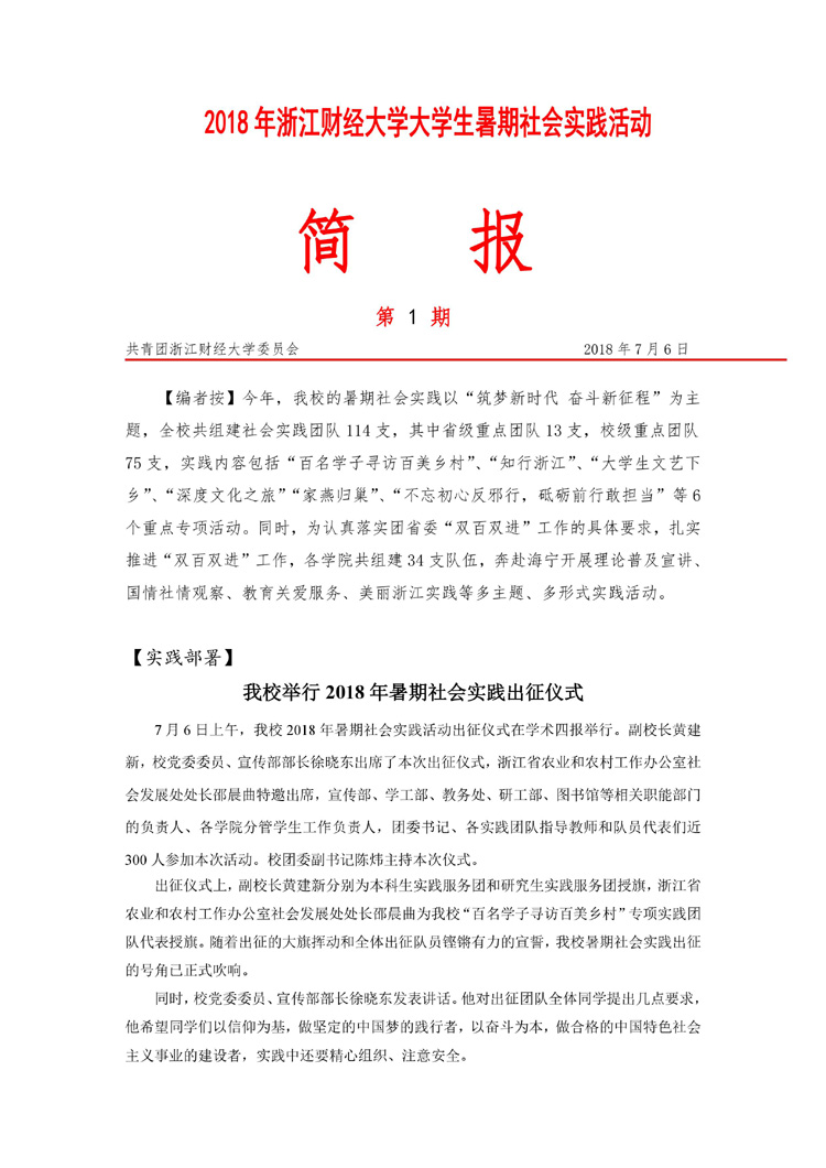 2018暑期社会实践活动简报第1期