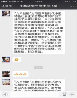 教工各党支部充分利用网络和新媒体平台,组织教工党员围绕“八八战略”的核心思想和内容以及学院发展、支部建设、师生情况等进行热烈讨论。