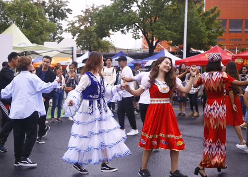 招新现场人声鼎沸,热闹非凡。近百个社团齐聚文化长廊,展示各具特色的社团文化,为社团招募新会员。激情四射的街舞表演、活力十足的cosplay演出、悠扬婉转的戏曲唱调、别具风情的新疆舞表演、古典儒雅的茶艺展示……这些或静或动的精彩演出,让广大新生目不暇接,流连忘返。