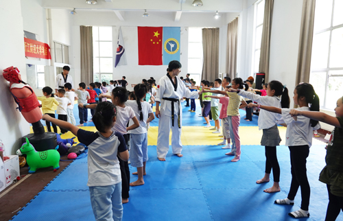 在下午的跆拳道环节,小朋友们进行了简单的热身后,迅速被专业体育老师佀慧老师的跆拳道练习深深吸引。现场气氛活跃,小朋友一招一式有模有样,霸气范儿十足。