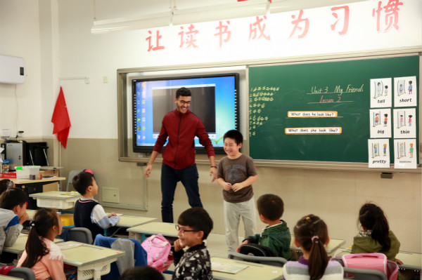 文清小学的小学生们热情大方,英语表达流利自如,带领着留学生们走遍了校园的每个角落。参观完校园,留学生们走进小学课堂,切身体验了一把中国小学生的校园生活。课后,小朋友们又跟留学生一起来到大操场进行游戏互动,现场欢声笑语阵阵,掌声此起彼伏。