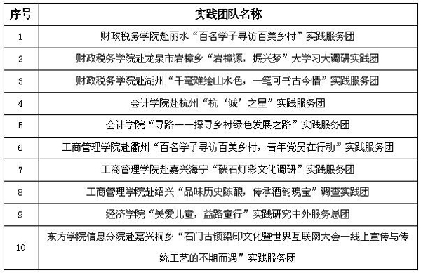 经过激烈角逐,财政税务学院赴丽水“百名学子寻访百美乡村”实践服务团等10支队伍被评为2018年暑期社会实践活动“十佳团队”。